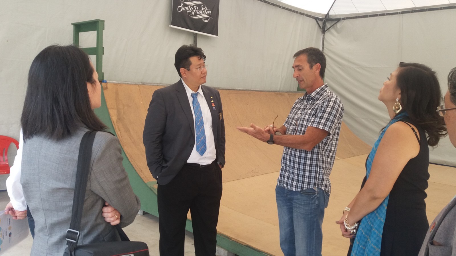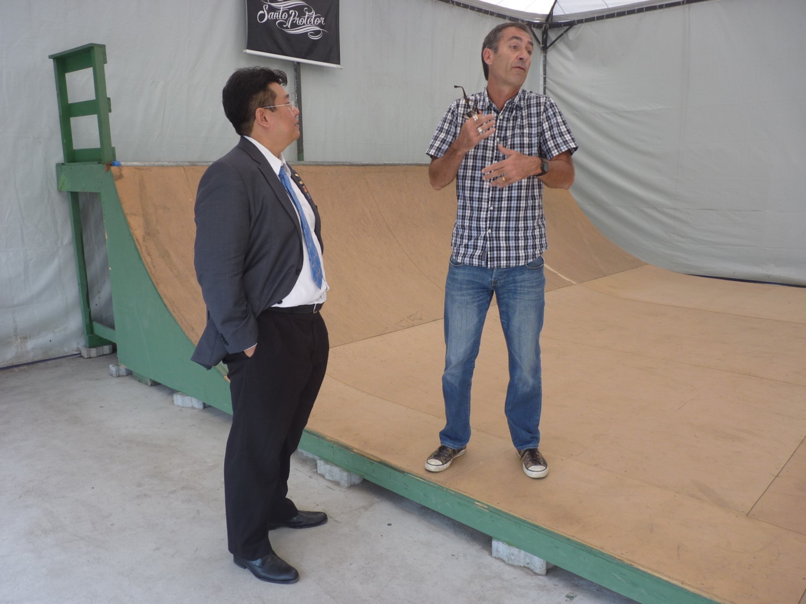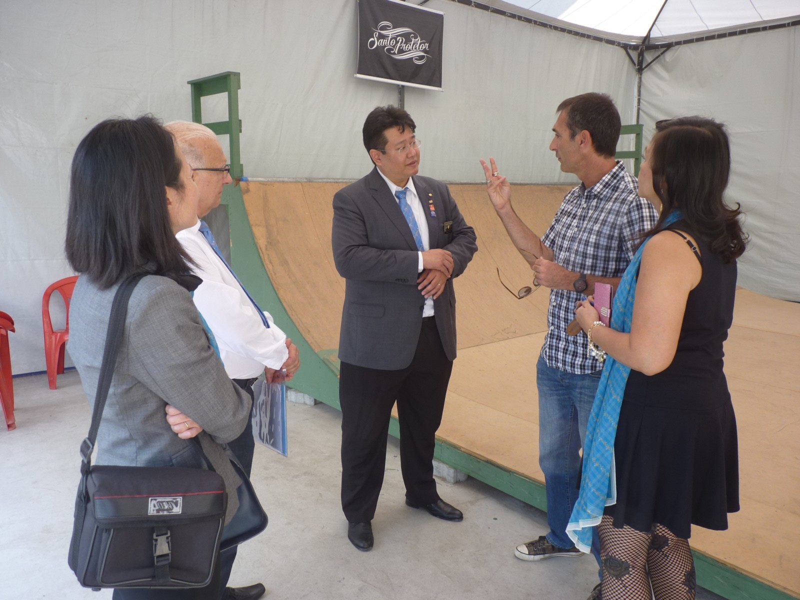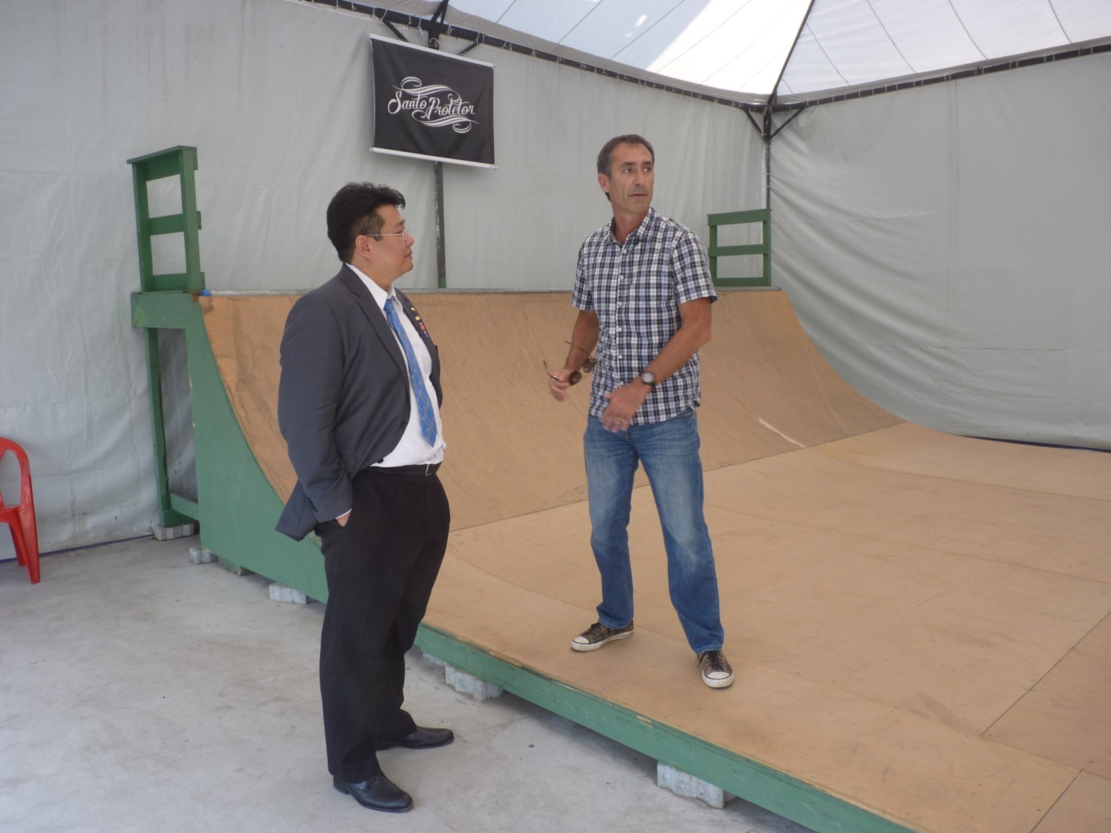 O governador foi conhecer os projetos desenvolvidos pelo clube. O início da visita aconteceu no espaço Briosa Skate Place, local cedido pela Associação Atlética Portuguesa, onde é realizado o Skate Terapia. O casal foi recebido pelo governador assistente da área 13, Antônio Henrique Medeiros Duarte, acompanhado pela presidente do clube, Maria Helena Ng e pelo rotariano e idealizador do projeto, Lupércio Conde Júnior.