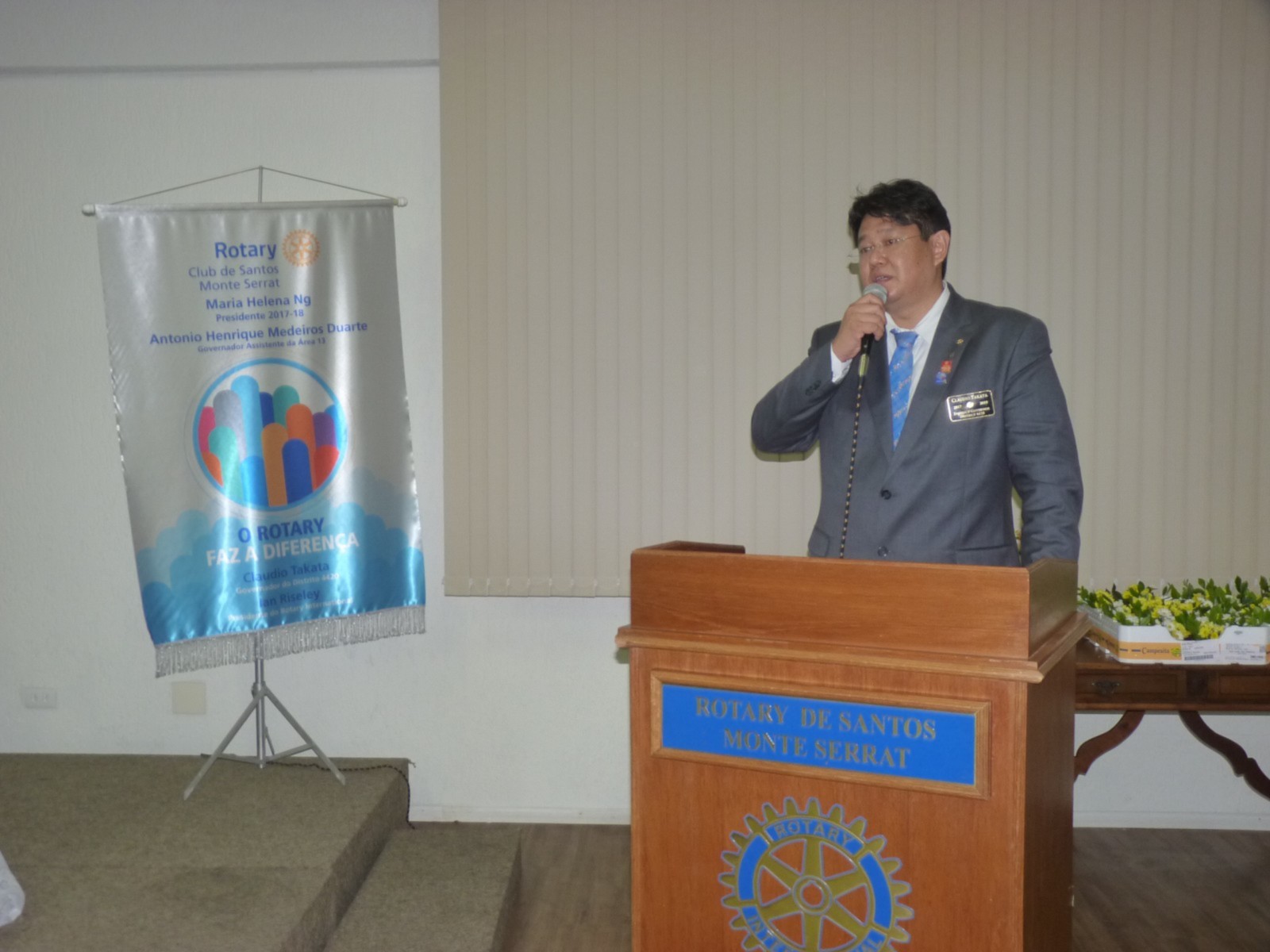 No tarde do dia 11 de setembro, o Rotary Club Santos Monte Serrat recebeu a visita oficial do governador do Distrito 4420, Claudio Takata e sua esposa Marie. A noite foi realizada a Festiva no Edifício Rotary, localizado na Av. Ana Costa, em Santos. O evento reuniu autoridades rotárias, membros da equipe distrital, familiares e amigos.