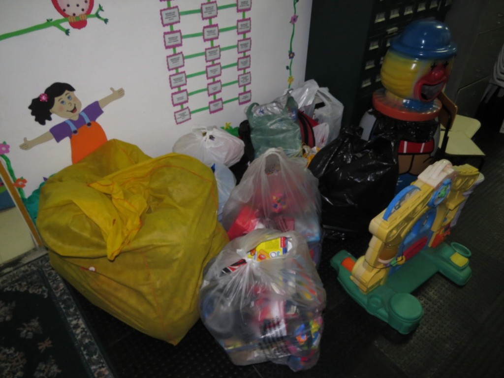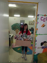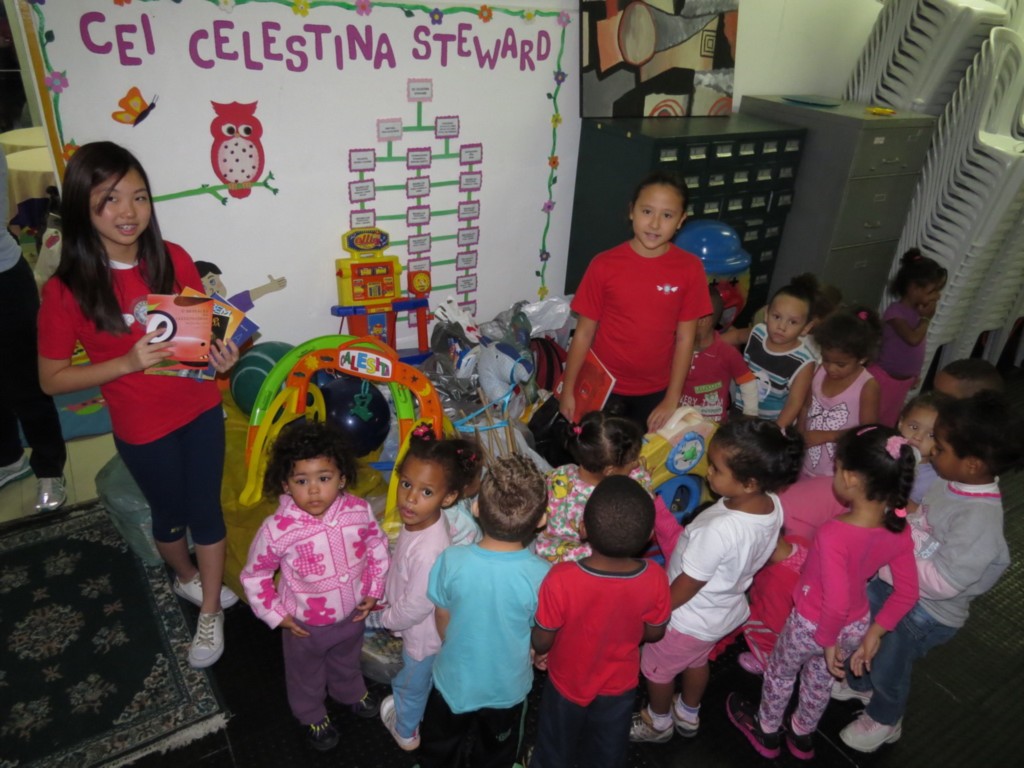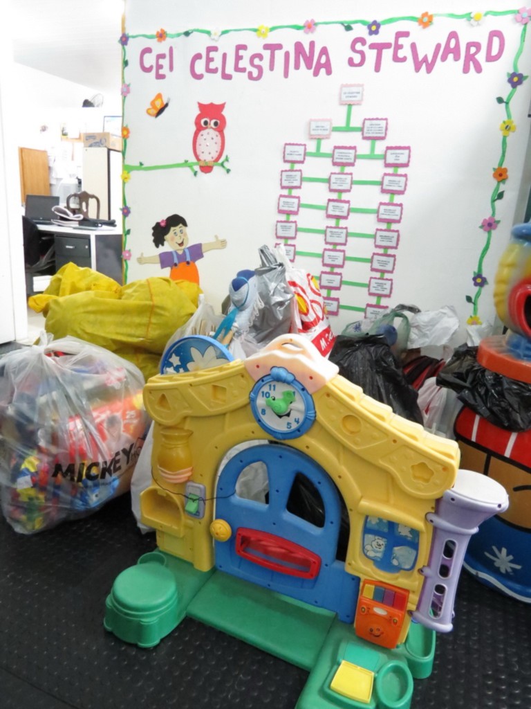 Os brinquedos foram arrecadados em escolas pelos kidianos, em especial pela Fernanda Kubota, e os vários sacos de brinquedos fizeram a alegria da criançada da creche.