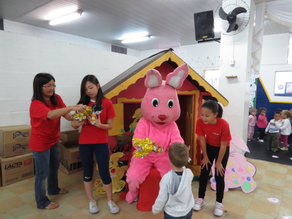 Os mais de 200 ovos de páscoa foram adquiridos com recursos provenientes da Festa de Halloween realizada no final do ano anterior, realizada pelo Rotary Kids em parceria com o Interact. A presidente do Rotary Kids Isabela Kobayashi e a kidiana Fernanda Kubota efetuaram as entregas, junto com a coelha da páscoa interpretada pela associada Marisa Dascenzi Kubota e com auxílio da também rotariana do clube Isabel Muroi.