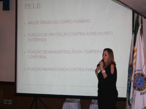 No dia 9 de Abril o RCSP Aeroporto recebeu a dermatologista Mariana Panzardi, que efetuou apresentação sobre a pele e os cuidados com o Sol. A palestra, muito interessante e instrutiva, orientou os presentes sobre como usufruir dos benefícios e ao mesmo tempo como se pretegerem dos malefícios que a radiação solar proporciona. Mariana é esposa do Presidente do RC SP Ipiranga, Marcelo Panzardi, que prestigiou a reunião.