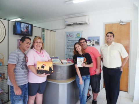 Nas fotos, registros do momento da entrega dos 36 livros doados pelos rotaractianos do RC de Santos Monte Serrat ao GAPC.