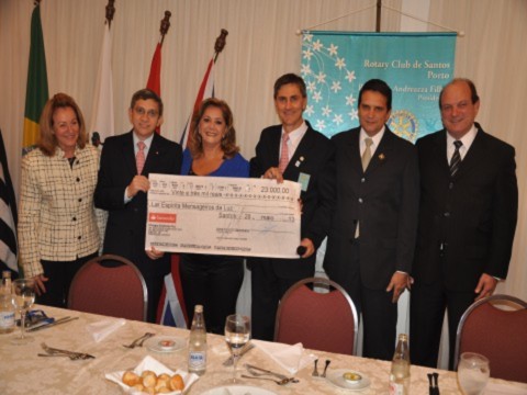 Foram repassados à entidade R$ 23.000,00 em reunião festiva realizada no dia 28 de maio, em homenagem à presidente da entidade, Edna Kodja Daguer, como profissional do ano 2012, pelos relevantes serviços prestados a comunidade de Santos.
