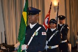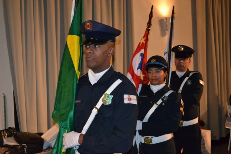 O início da parte protocolar da festiva que reuniu vários clubes do distrito, foi marcado pelo hasteamento da bandeira feito por militares que oficializaram a cermônia.