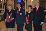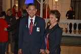 Nas fotos, os casais presidentes da Paz e Transformadores, o casal governador Joaquim e Celia recepcionados pelo casal presidente e os agraciados com título Paul Harris, durante a solenidade.