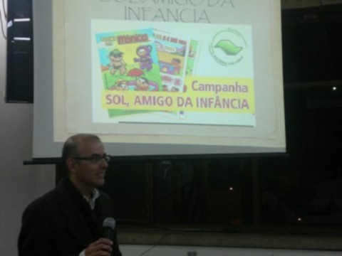 Na reunião de 15/8, o Presidente do Rotary Club Santos Oeste, Francisco Ferreira (foto abaixo), fez uma excelente apresentação do projeto Sol Amigo da Infância, que tem como objetivo principal divulgar hábitos saudáveis para prevenção de câncer de pele. O projeto é promovido em parceria com a Sociedade Brasileira de Dermatologia, Maurício de Sousa Produções e o Rotary Club. Na palestra, Francisco informou que está praticamente acertada parceria com a Prefeitura do Guarujá, faltando apenas assinatura de convênio. Na oportunidade, agradeceu aos rotarianos do Guarujá, especialmente ao rotariano Adilson Luiz de Jesus, atual Secretário de Desenvolvimento Portuário, pelo empenho em trazer a campanha para o Guarujá.
