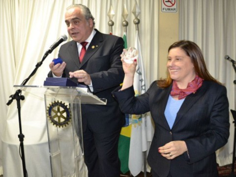 Em seu pronunciamento o governador parabenizou Cinthya e o clube por todas as conquistas e pela importante representatividade junto ao Distrito 4420, trabalhando com empenho ao longo dos anos para servir e agora transformar mais vidas, como ele e Célia puderam ver na CHAMA, projeto apoiado pelo clube.