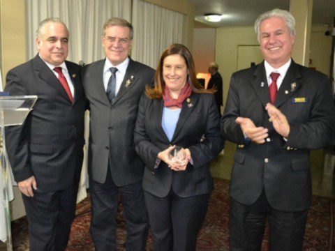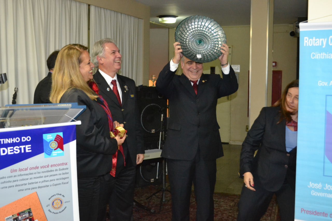 O Governador convidou o governador assistente da área 1, Rui Cabral de Mello para que com ele entregassem o 1º Cristal EREY do RCSP-Sudeste para a presidente Cinthia Corrêa da Costa Machado.