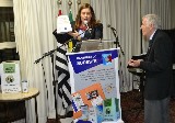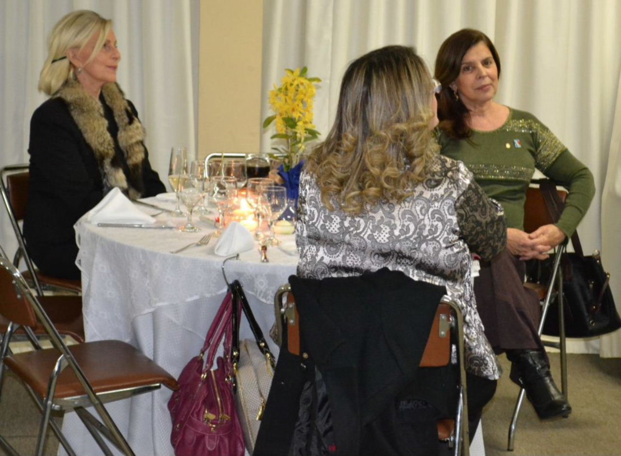 A presidente da Casa da Amizade, Kelly entregou flores para a Sra. Evelyn Lutfi, uma das fundadoras da Casa da Amizade, que representou as senhoras que fazem parte das ações voluntárias em prol da comunidade.