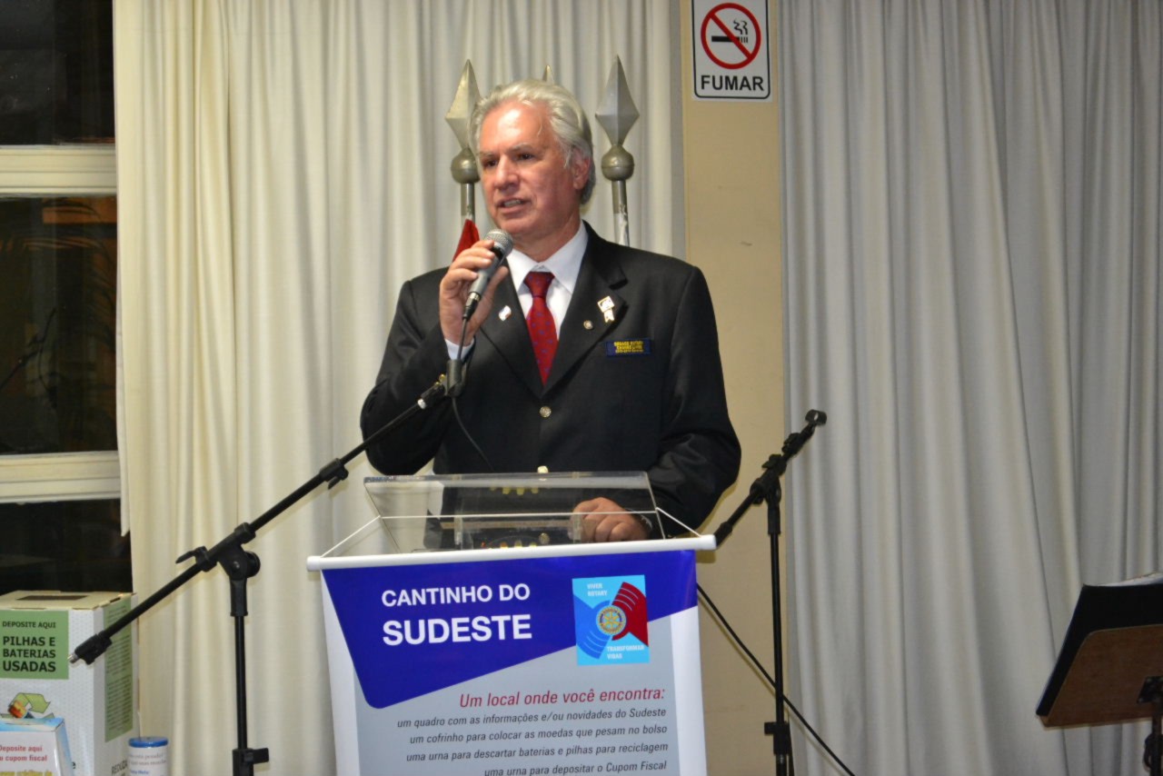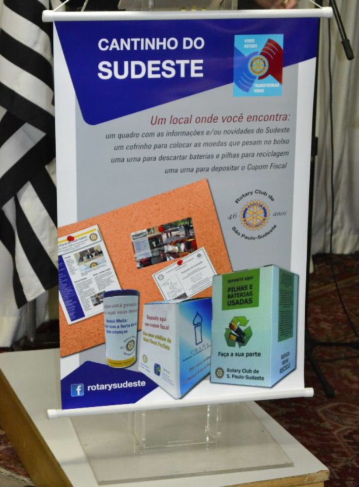 O companheiro Arnaldo Brunoro contou um pouco da história do RCSP-Sudeste e o sócio fundador deste clube, Jorge Lutfi inaugurou o Cantinho do Sudeste, como denominou Cinthya, um pequeno espaço dedicado às ações e informações do clube, descerrando o banner que simboliza esse projeto.