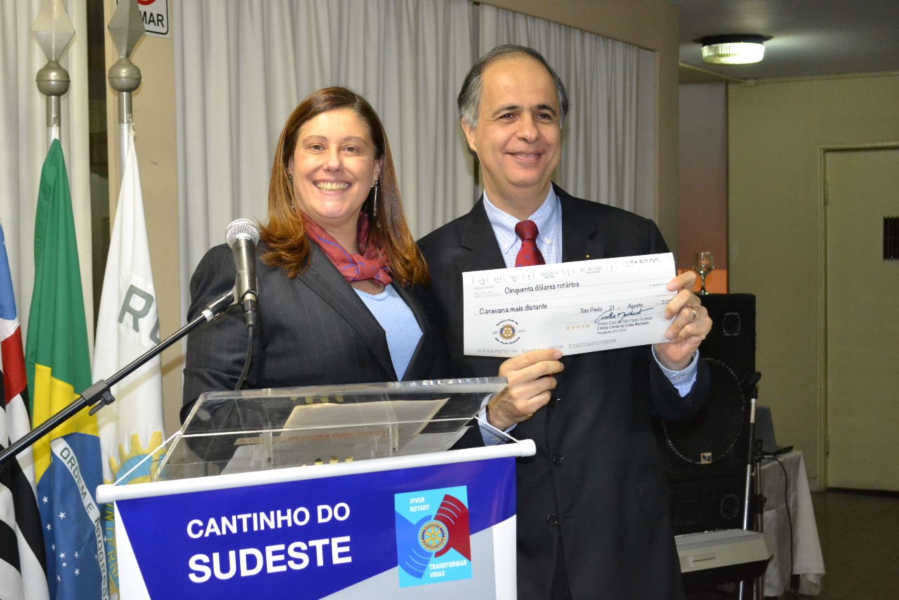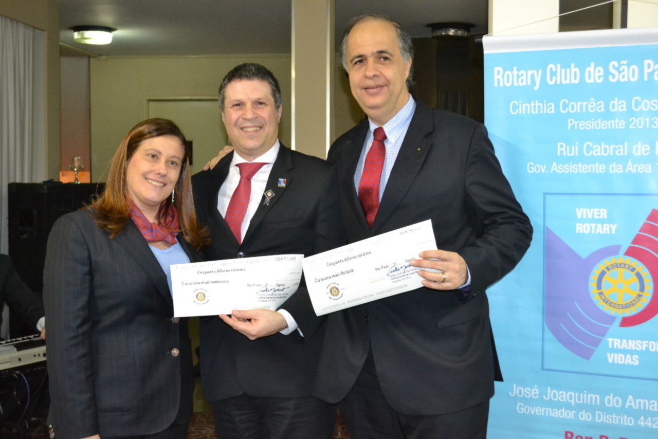 Foram entregues cheques de U$ 50,00 à Caravana Mais Distante ao RC de Santos-Praia e à Caravana Mais Numerosa, ao RCSP-Sul.