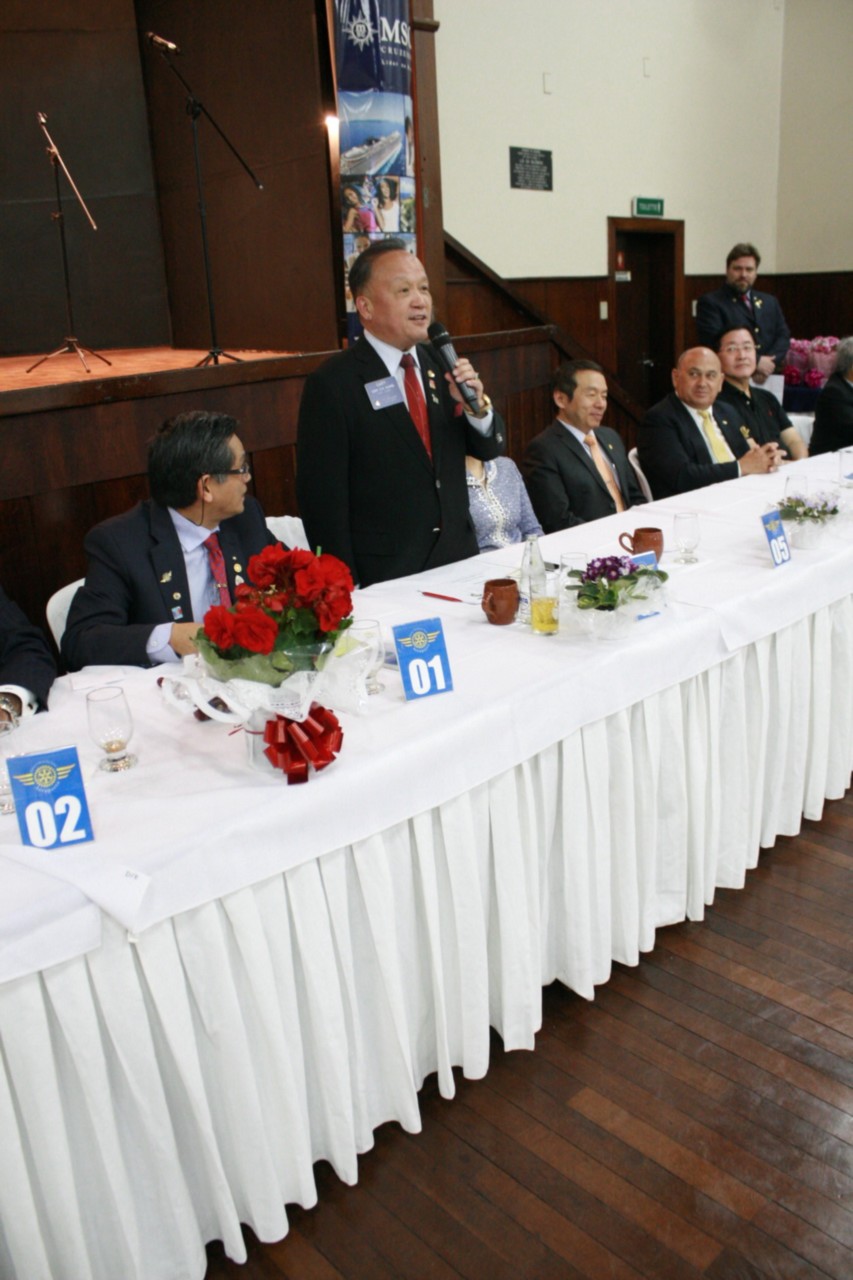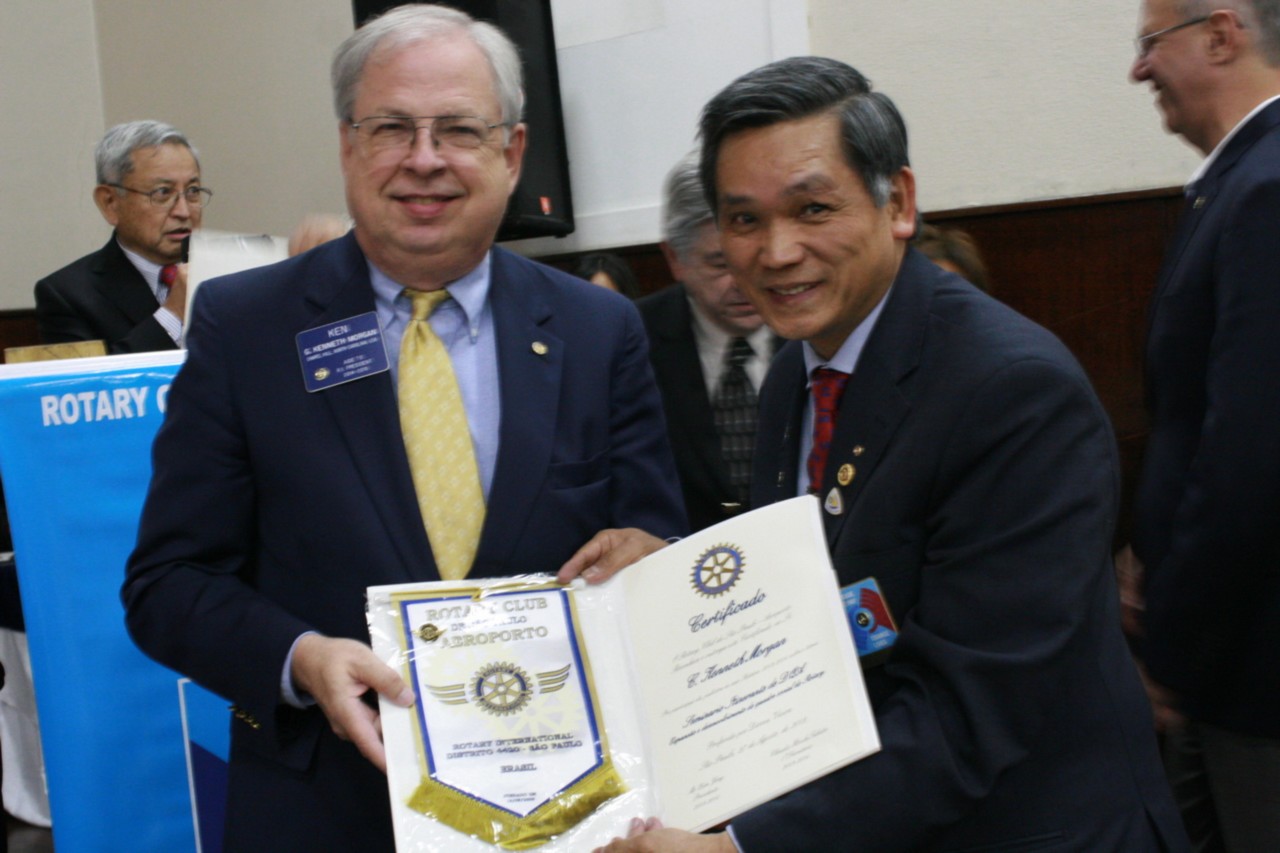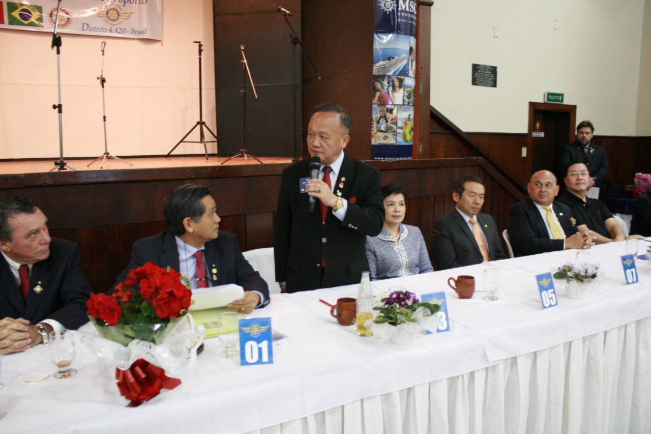 Durante a reunião, o Governador Eleito do Distrito 4420 Hiroshi Shimuta apresentou mensagem de agradecimento pela presença das ilustres visitas, que então puderam acompanhar o Seminário de DQA que era realizado. A tradução dos pronunciamentos foi realizada pela companheira Claudia Priori, da Casa da Amizade do RCSP Aeroporto.