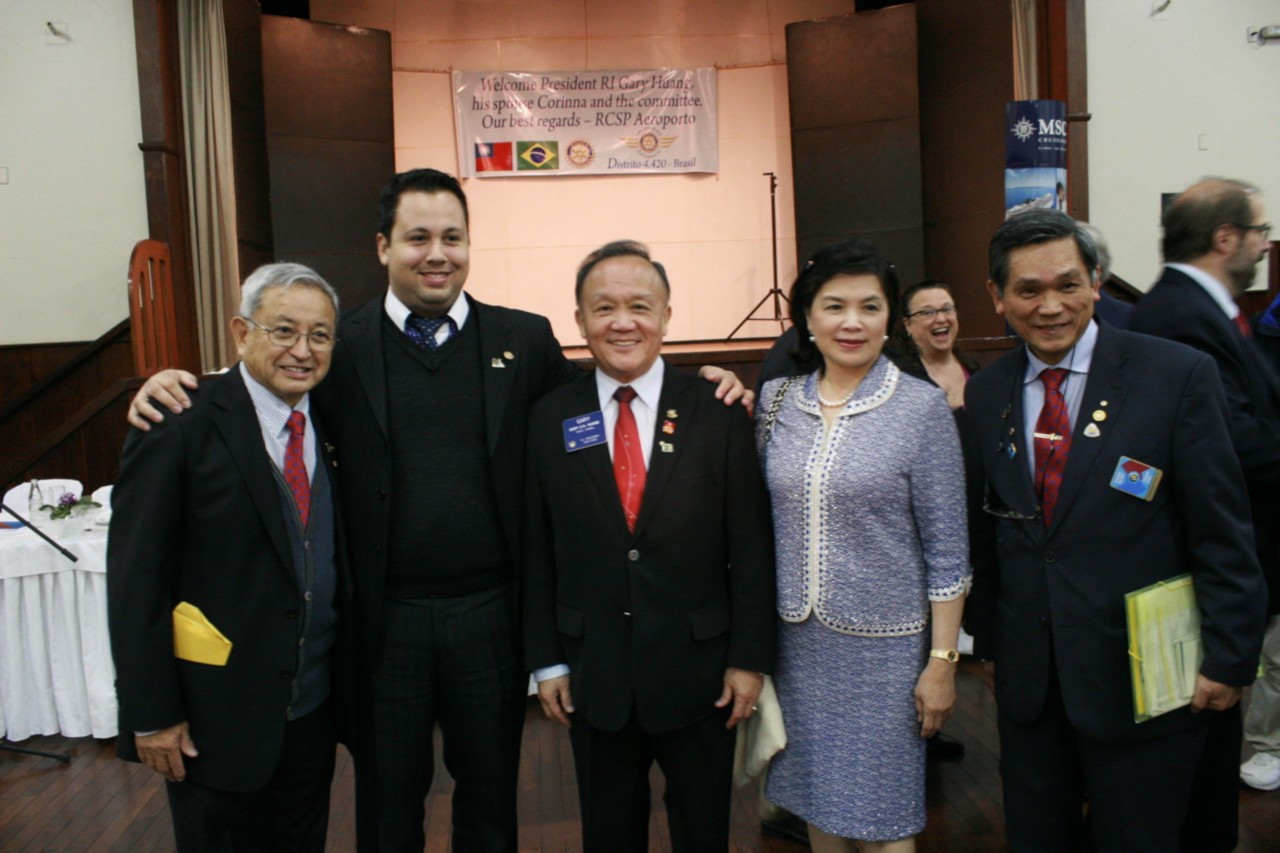 O Presidente Eleito Gary Huang e sua comitiva visitaram o Rotary Club de São Paulo Aeroporto durante sua passagem por São Paulo, durante o Seminário de Desenvolvimento de Quadro Associativo que estava sendo realizado na Área 1 pelo EGD Dirceu Vieira. O Presidente do RCSP Aeroporto Francisco Mo Qom Yeng recebeu o presidente eleito e sua comitiva, que incluía Ken Morgan, aid do presidente eleito, Kazuhiko Ozawa, Curador da Fundação Rotária, Michael Colasuro, Tesoureiro da Fundação Rotária, e ainda Peter Bundgard e Frederich Liu, que como os demais são membros da Comissão Organizadora da Convenção Internacional de 2015. Também prestigiaram a reunião os governadores eleitos do Distrito 4430, Arquimedes, e do Distrito 4610, Ivo Nascimento.