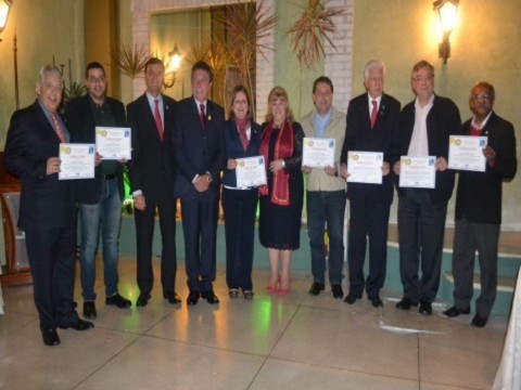 Nas fotos, Dirceu Vieira, o casal Eleni e Ari Chacur e o Fernando Assis, com presidentes homenageados.