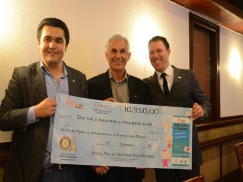 O Sr Francisco Guetti representante do GRAAC recebeu das mãos do presidente transformador Paulo Bueno e do presidente fundador Raul Pereira o cheque representativo no valor de R$ 10.350,00 referente a participação do RCSP Ponte Estaiada na venda dos tíquetes da campanha Mc Dia Feliz. O empenho e a participação de todo o clube foram fundamentais para o alcance desse expressivo resultado.
