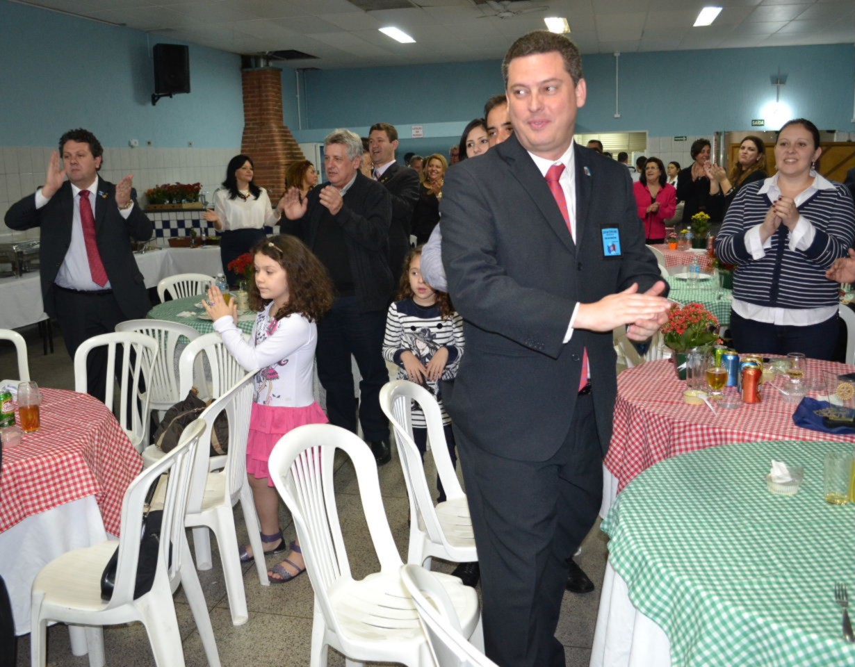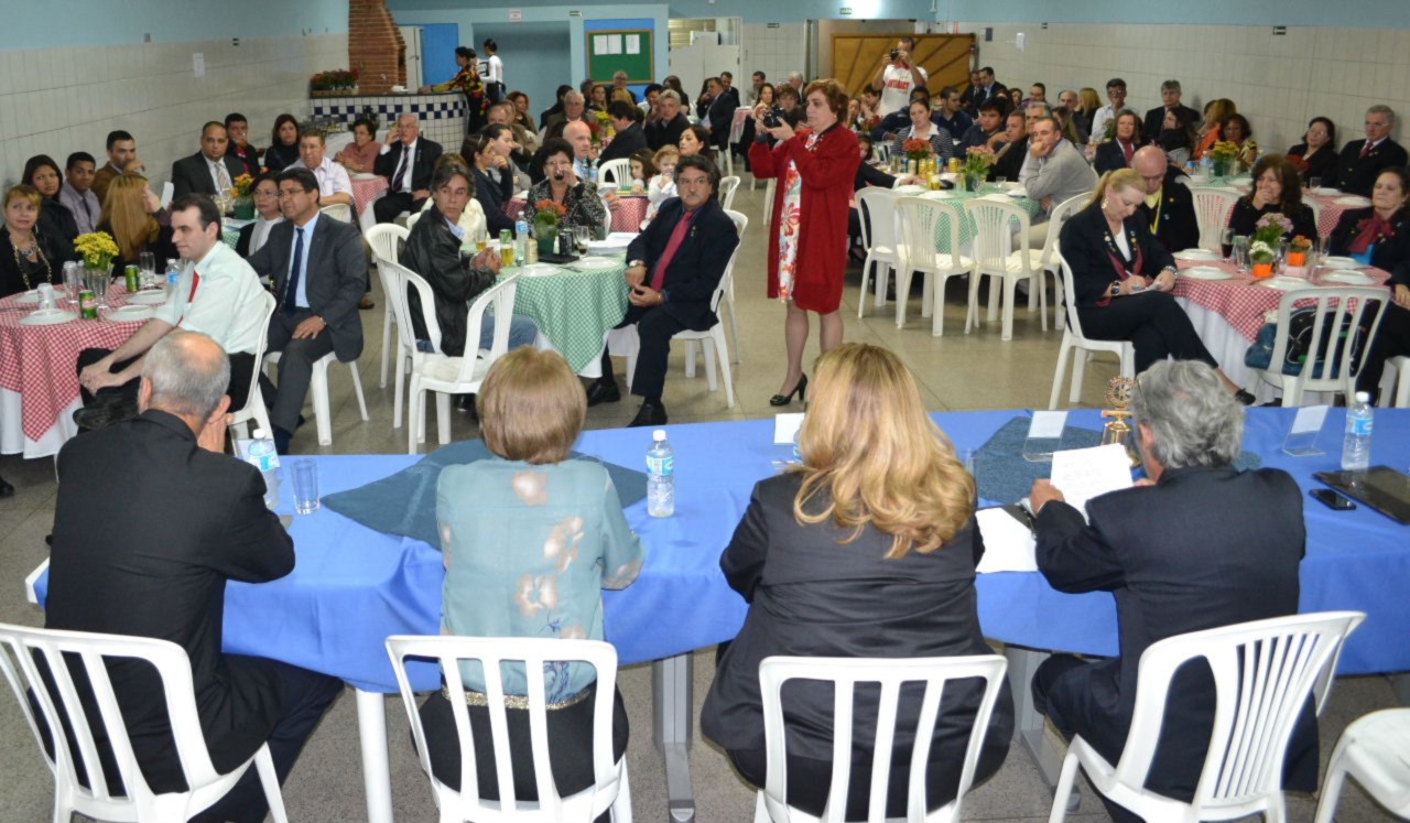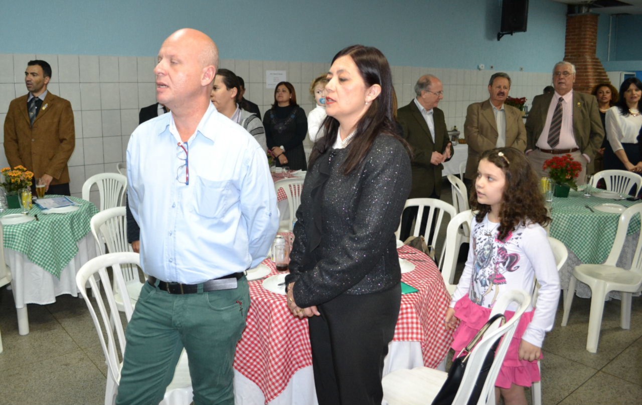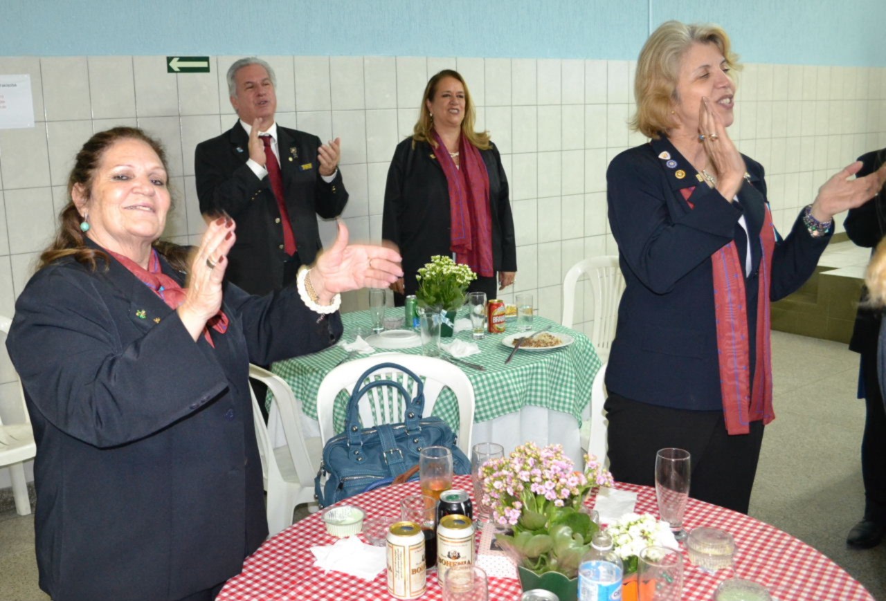 Na sequência da programação da noite festiva, todos participaram da reunião solene na sede do clube, que comemorou aniversário, empossando a nova companheira Raquel Reiko Polizel, que tem como padrinho o companheiro Luizinho.