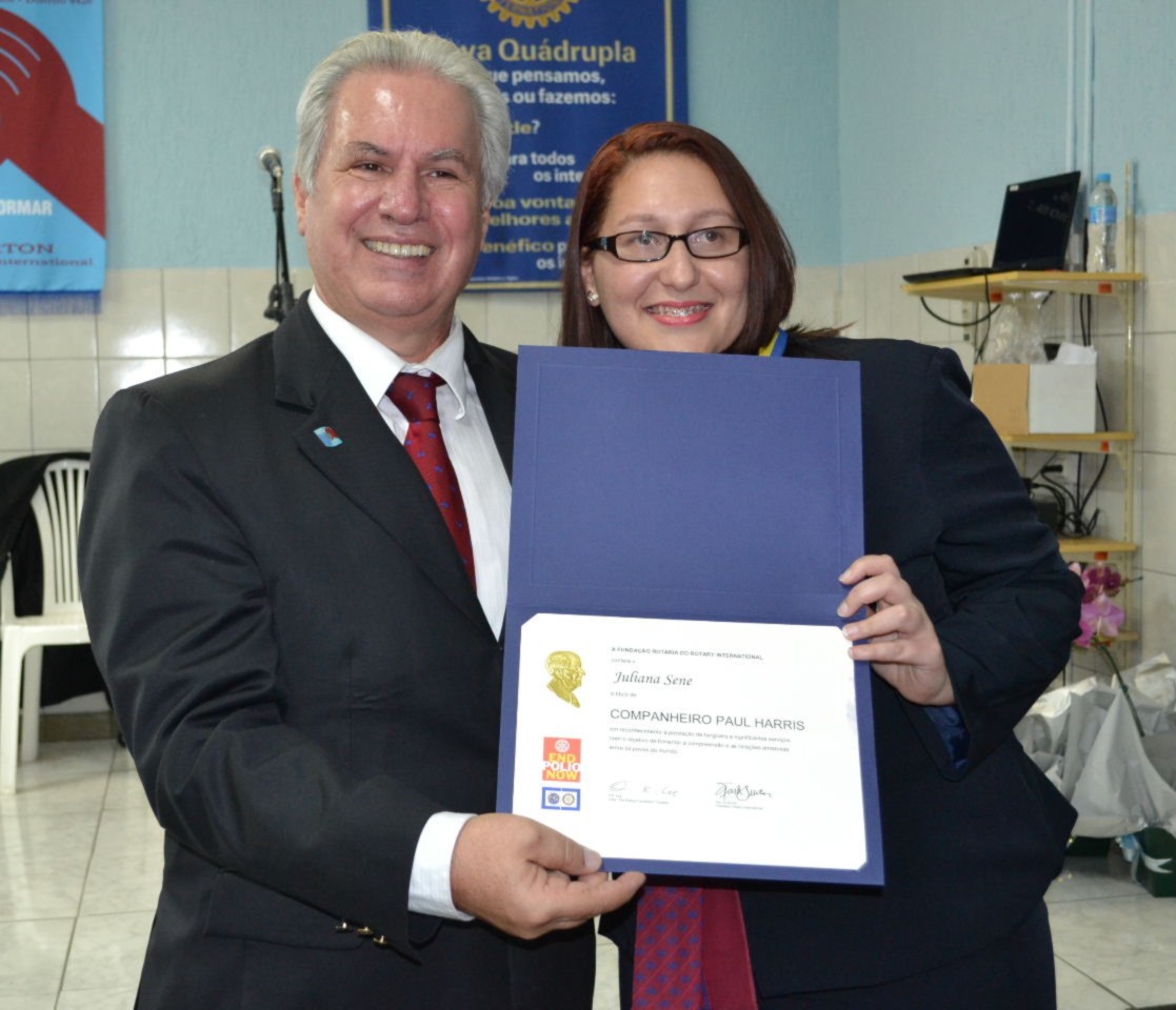 Foram outorgados dois títulos Paul Harris, entregues pelo governador Joaquim ao companheiro Ermindo Lúcio da Paz e à presidente do Rotaract de Mauá, Juliana Sene.