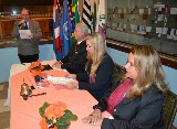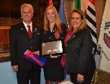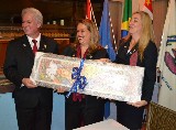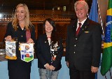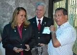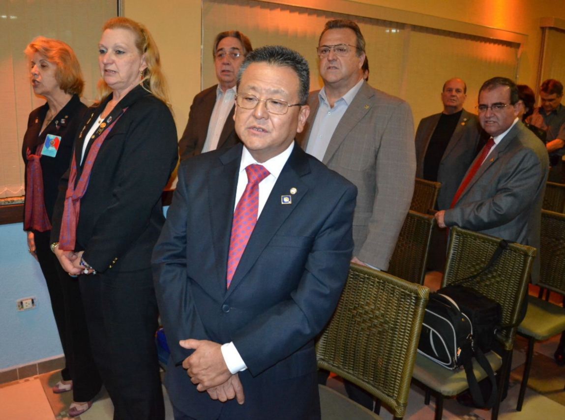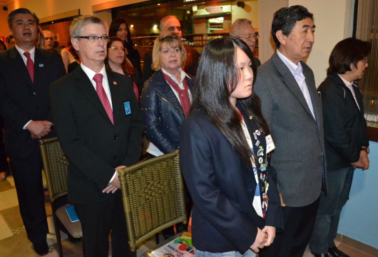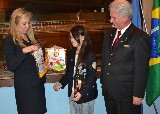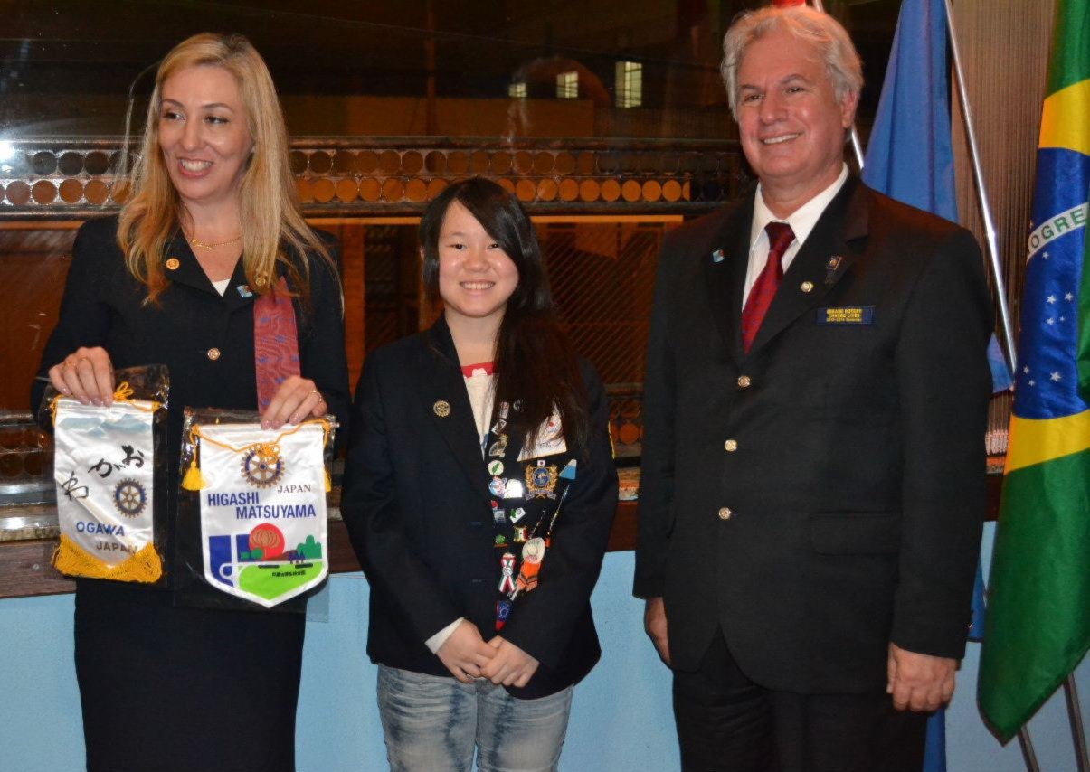 A intercambista japonesa Sora, fez questão de prestar homenagem à presidente Fernanda Seabra Rangel, que recebeu a flâmula das mãos da jovem, ao lado do governador Joaquim.