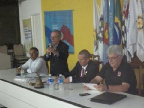 Na reunião de 03/10 do RC Guarujá, o ex-Governador Sérgio Lazzarini fez brilhante palestra sobre Companheirismo e Paulo Harris Society. Houve comparecimento expressivo de associados e convidados, que acompanharam o palestrante com muito interesse e atenção. Foto: Sérgio falando.