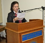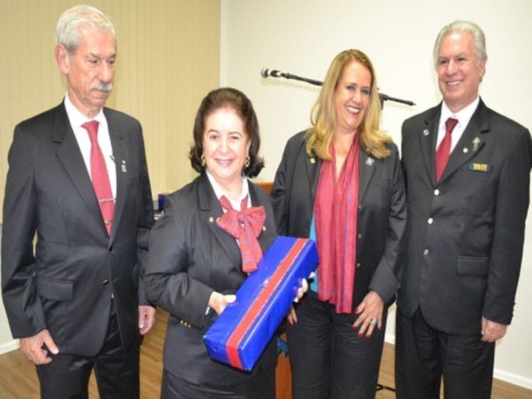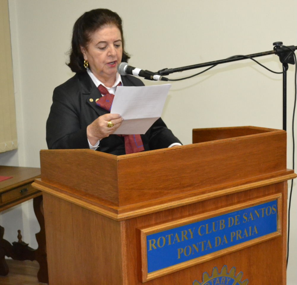 Ela agradeceu a presença de todos e falou sobre a importância de estar envolvida em Rotary, junto a pessoas de bem. Vivemos entre pessoas de bem, abnegados que buscam o ideal de servir. É um prazer enorme fazer parte desse clube e representar o distrito. O caminho é longo e difícil, mas juntos, como uma família, poderemos ir adiante, disse a presidente transformadora.