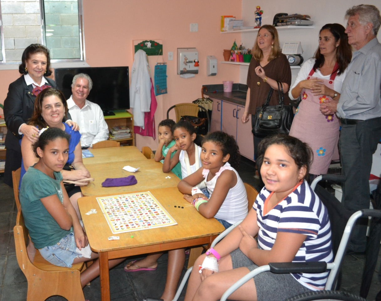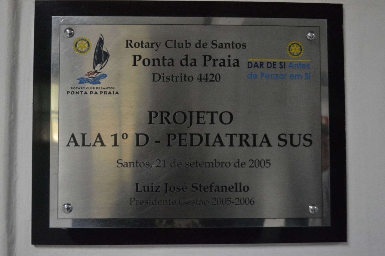 A primeira etapa da visita começou na Brinquedoteca instalada na Ala SUS da Santa Casa de Misericórdia de Santos - SP, onde diversas crianças se recuperam brincando e vivendo momentos de puro encantamento com atvidades lúdicas durante o período em que se restabelecem, dessa forma mais fortalecidos, graças a iniciativa dos rotarianos.