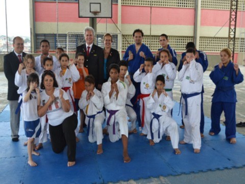 Alunos do projeto iniciado há 11 anos pela empresária e rotariana do RC de Diadema Floreat, Vera Lúcia Rocha e seu filho Sérgio Augusto Barbosa, atende agora 204 famílias e teve no primeiro dia de inscrições, 180 fichas preenchidas para integrar novas turmas. O casal governador pode conhecer uma das turmas composta por campeões, que fez demonstrações da prática esportiva e posou para foto oficial com os rotarianos.