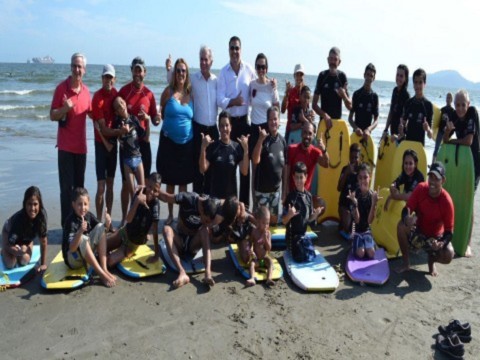 Os rotarianos aproveitaram a ocasião para apresentar um dos projetos apoiados pelo clube, na Escola Radical de Surf, localizada no Posto 2 , na praia do Campo Grande.