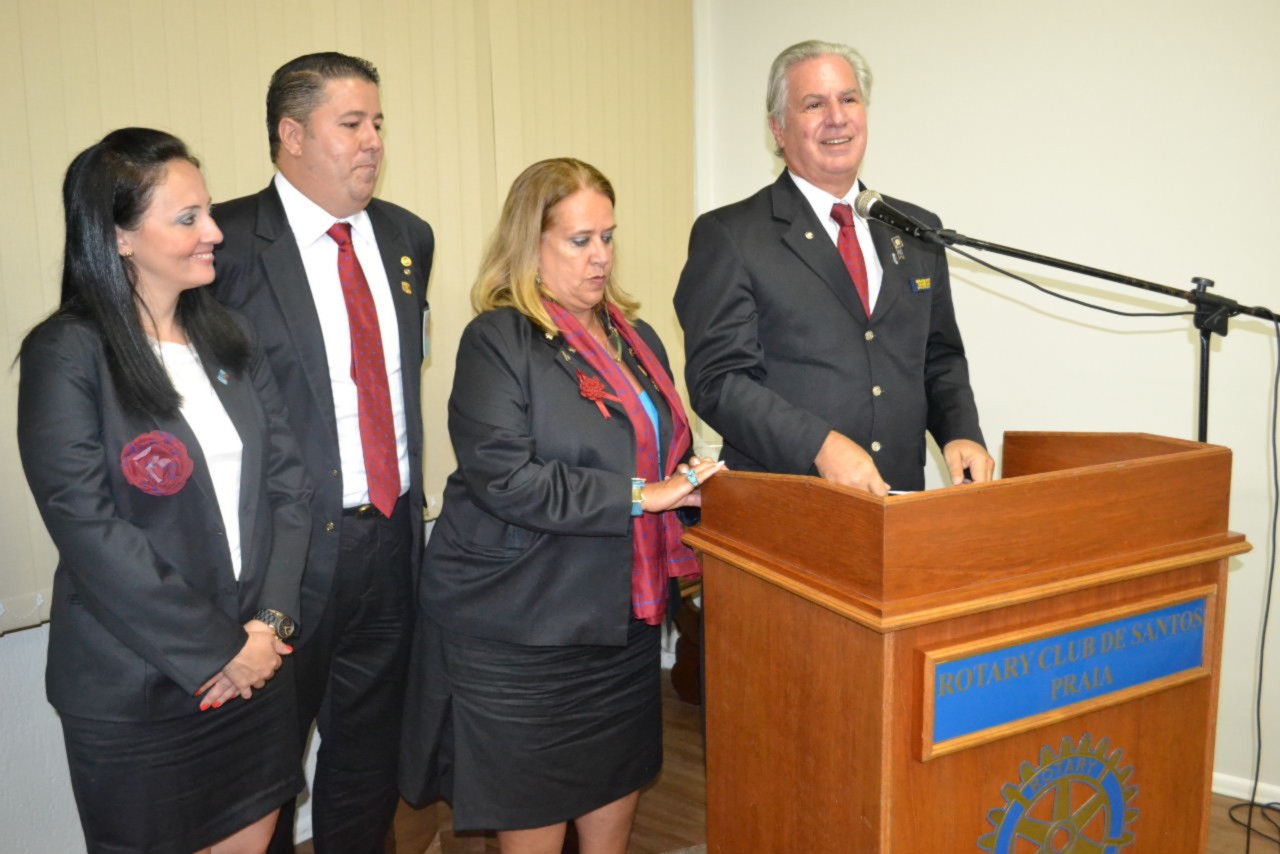 O casal presidente do Rotary Club de Santos Praia, Leonardo Araújo Peres Martins e Aline, acompanhados de rotarianos do clube, recepcionaram o casal governador José Joaquim do Amaral Ferreira e Célia, em frente ao Marco Rotário instalado pelos companheiros, no jardim da praia do Boqueirão em Santos, local que registou o início da Visita Oficial ao clube, realizada no dia 30 de janeiro.