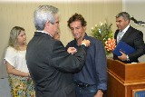 Nas fotos, registros de projeto visitado, outorga de título e casais governador e presidente na festiva.