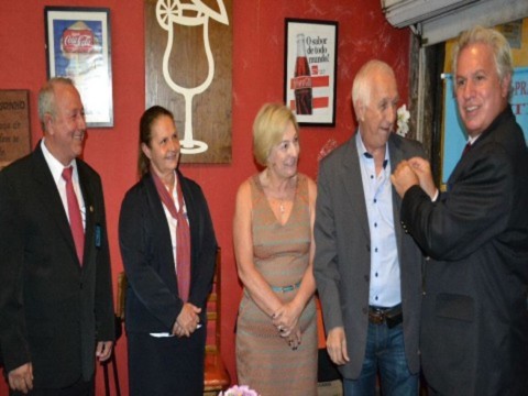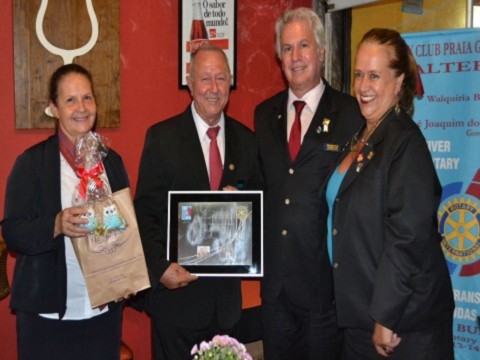O ponto alto da reunião ficou por conta da outorga da 4ª Safira ao sócio-fundador do clube, companheiro Edson Milan, que vive Rotary há 37 anos e compartilha o ideal de servir com seus companheiros, entre eles Gilmar Hernandez, que também foi agraciado na noite festiva, recebendo sua 3ª Safira.