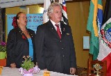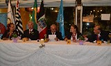 Nas fotos, registro da entrega de equipamento doados para o Caps AD de Praia Grande, outorga da 4ª Safira do companheiro Milan e os casais presidente e governador, na festiva.
