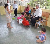 As crianças ficaram surpresas com a presença dos companheiros e uma das assistidas, leu histórias infantis para os pequenos e visitantes, que interagiram com todos, durante a permanência no local.
